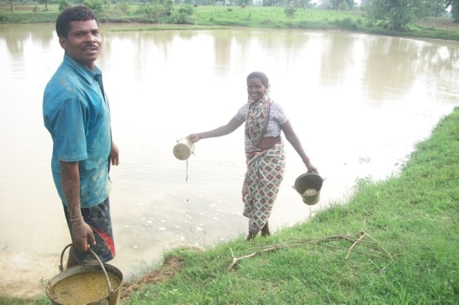 There is a large pond on Dropati’s land that had always been used to water crops and vegetables and had occasionally yielded a fish that Dropati would cook for dinner. Dropati quickly learnt that her pond could support over 100 kg of fish stock. Good Shepherd helped her access 10kg of high quality fertilised fish eggs of several species and fish feed.
